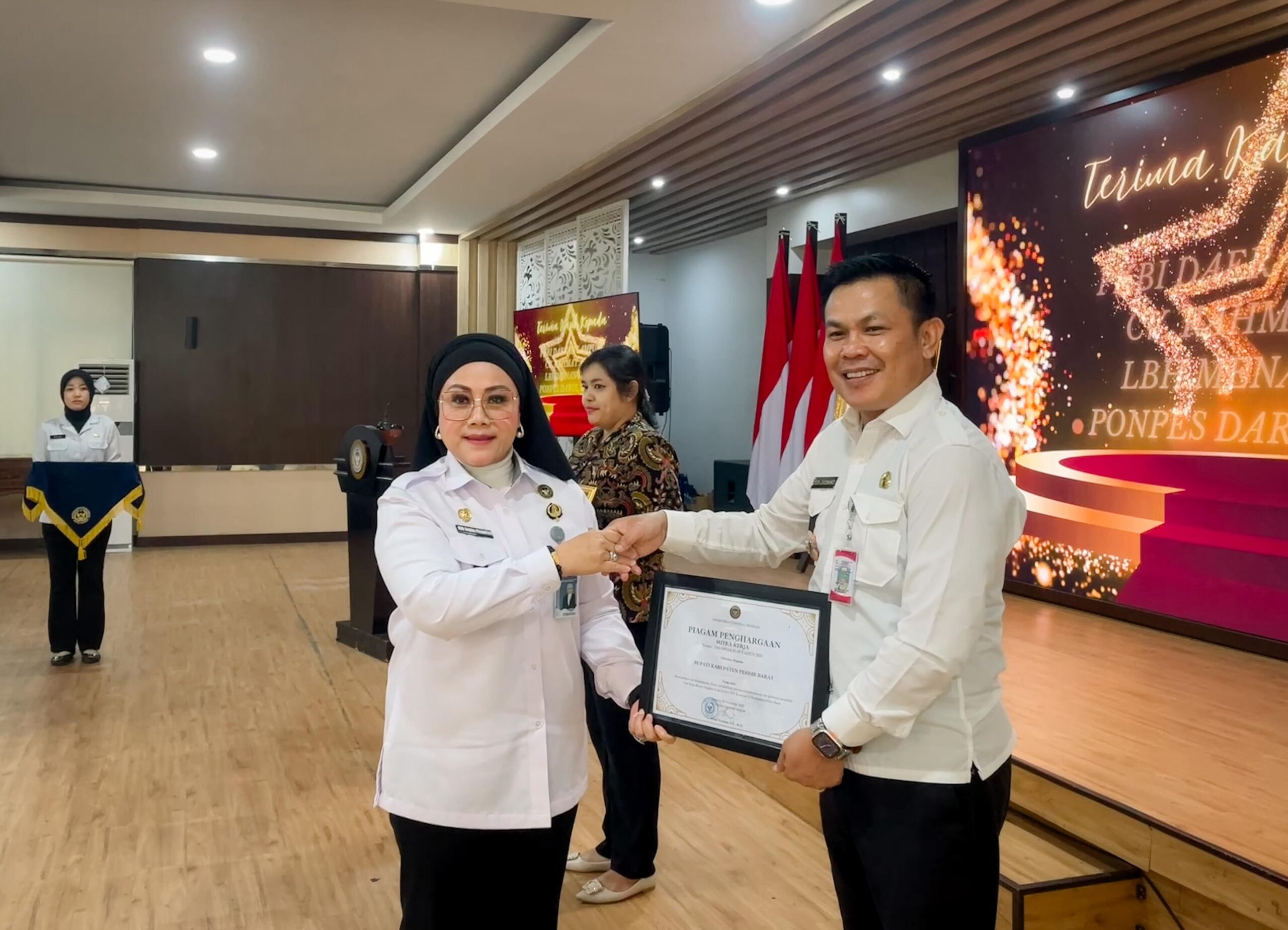 Penghargaan tersebut diterima langsung oleh Sekretaris Daerah Kabupaten Pesisir Barat Tedi Zadmiko, S.K.M., S.H., M.M., yang hadir mewakili Bupati Pesisir Barat Dedi Irawan.