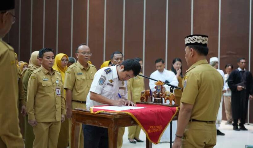 Virallampung.com_ Metro- Wali Kota Metro Bambang Iman Santoso mengambil sumpah jabatan dan melantik 100 pejabat yang terdiri dari pimpinan tinggi pratama, pejabat administrator, pejabat pengawas,…